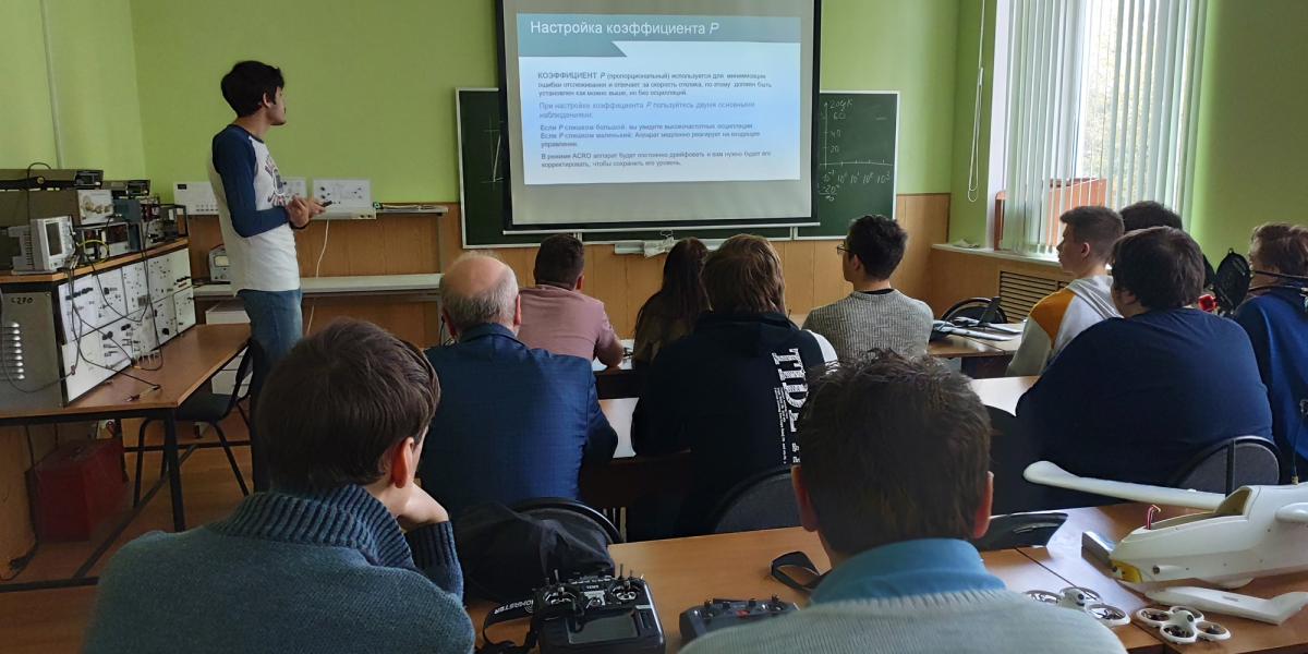 Базовые сведения о теории беспилотников студенты получили из доклада-презентации, а затем в интерактивной форме познакомились с различными типами БПЛА, принципами работы, управления и настройки этих устройств. Интерес также вызвала информация об узлах и элементах БПЛА, параметрах FPV-дронов, особенностях радиоуправления и полетных режимах БПЛА. Отдельное внимание было уделено способам противодействия беспилотникам, особенностям конфигурации и программирования полетных контроллеров.
