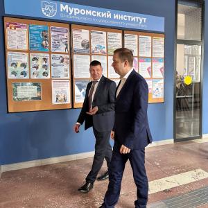 Сегодня Муромский институт с рабочим визитом посетил депутат Государственной Думы Алексей Борисович Говырин. Директор МИ ВлГУ, профессор Аркадий Львович Жизняков провел для гостя экскурсию по главному корпусу института, рассказал о взаимодействии вуза с промышленными предприятиями, крупными компаниями и корпорациями, показал новые брендированные аудитории и базовые кафедры, рассказал о процессе обучения, практиках, стажировках и карьерных перспективах студентов института.