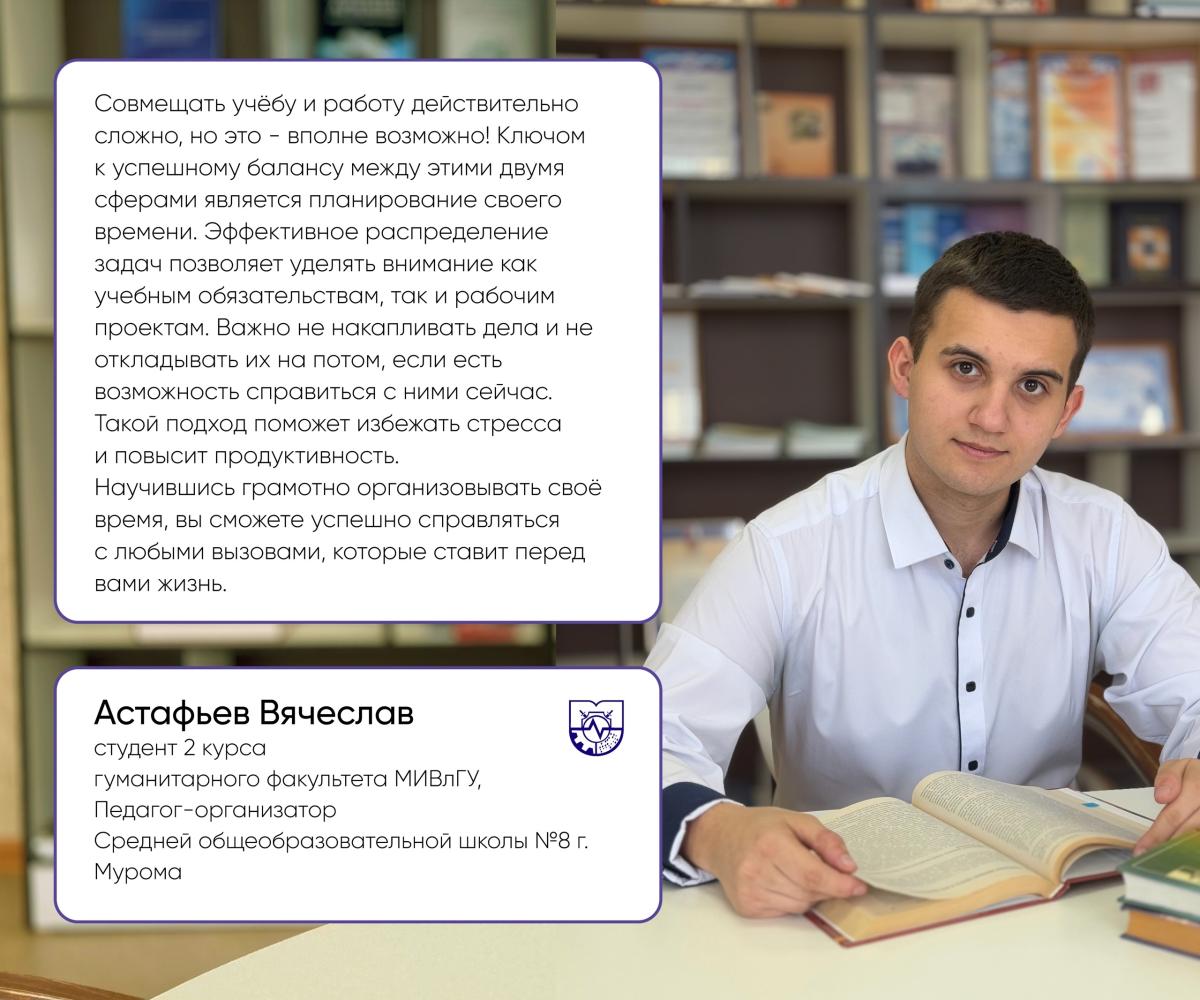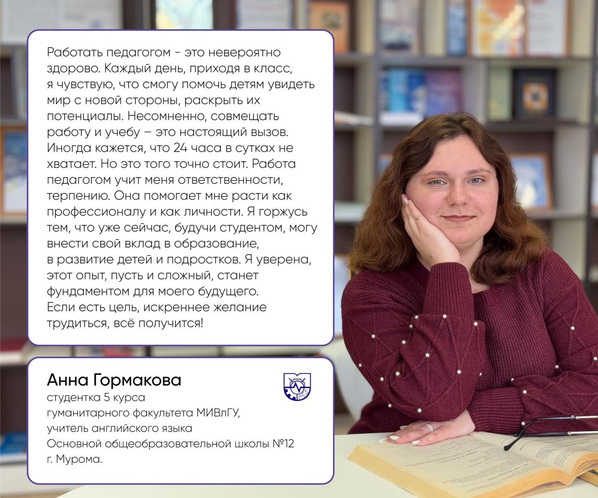 Сегодня мы делимся историями студентов гуманитарного факультета. Каждый из них — настоящий пример для подражания! Они доказывают, что можно быть успешным в разных сферах, оставаясь студентом МИ ВлГУ.
