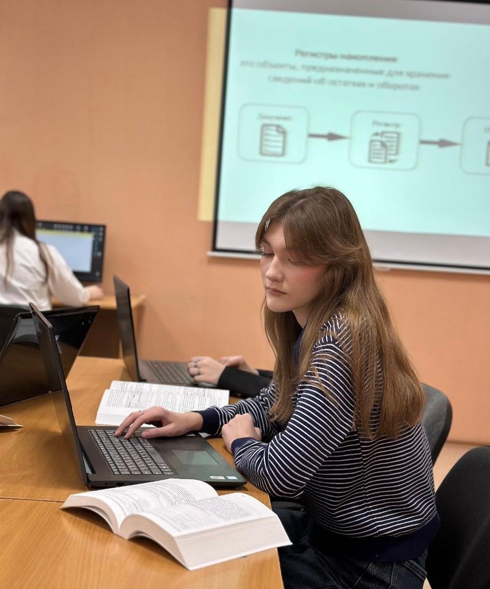 Знакомство с 1С для экономиста обычно ограничивается работой в готовой конфигурации «Бухгалтерия». Но мы пошли дальше! В рамках прошедшего мастер-класса студенты-экономисты смогли примерить на себя роль разработчиков прикладных решений на платформе 1С:Предприятие. В ходе выполнения задания студенты увидели, как устроена программа «изнутри», изучив её конфигуратор, создали свою мини-программу для учета в небольшом магазине, настроили документы, справочники и даже сформировали собственный отчет по продажам.
