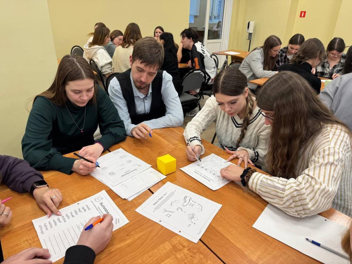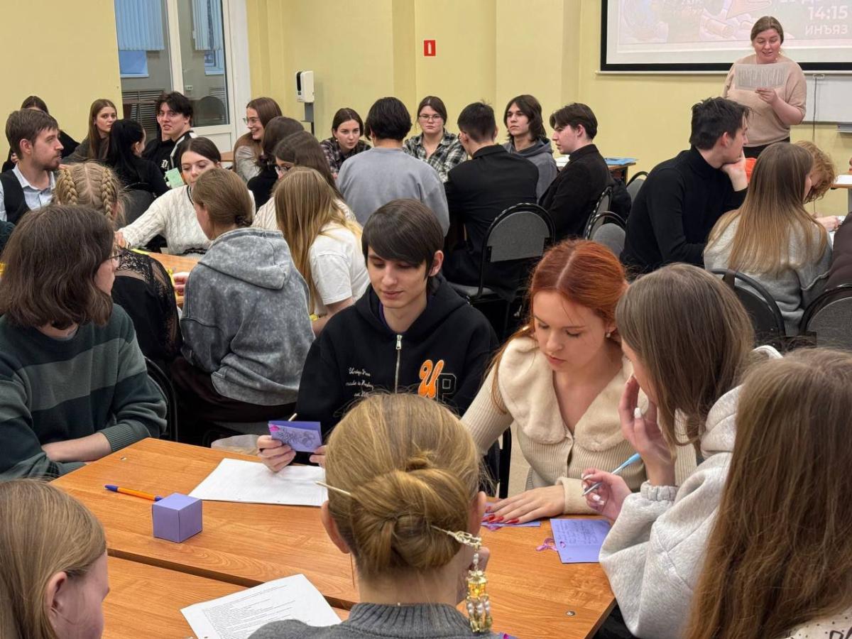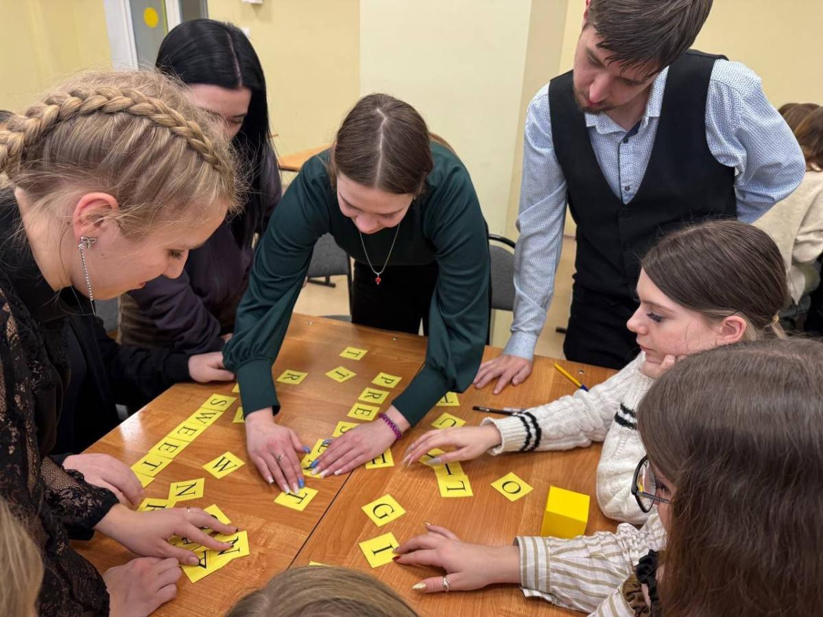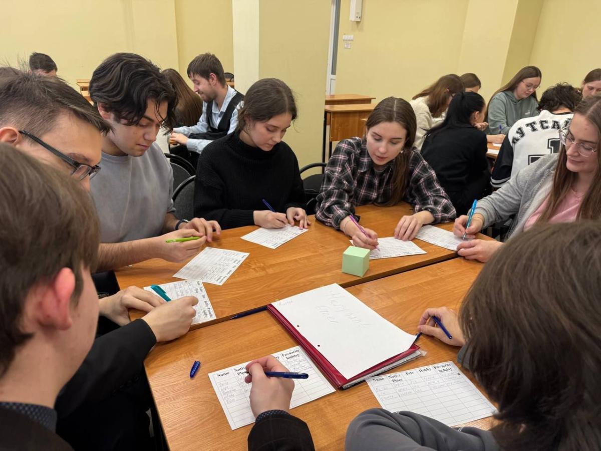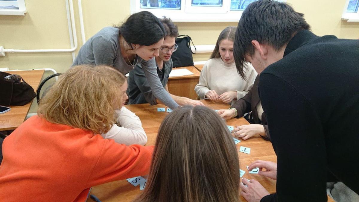 В лингвистическом турнире «Jingle Brains» студенты направления «Педагогическое образование» сразились в остроумии, эрудиции и знании языков. Участники прошли через серию интересных испытаний, где соединились логика, языки и наблюдательность. Все началось с заполнения анкеты о себе. А потом команды, изучив анкеты соперников, выявляли самые популярные хобби и интересы. На втором этапе пришлось ломать голову над каверзными вопросами: когда же день рождения у Шерлока Холмса и как рассаживались гости на празднике?