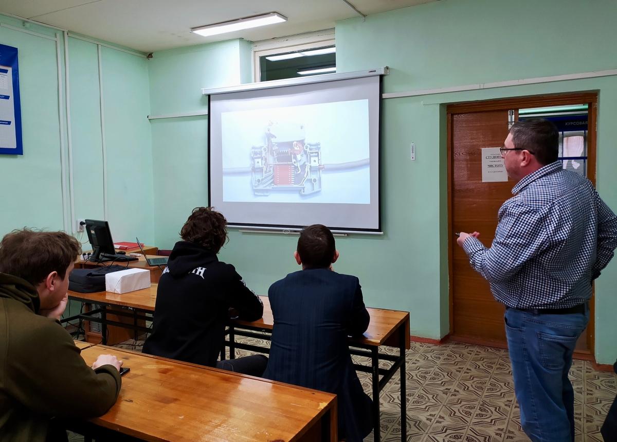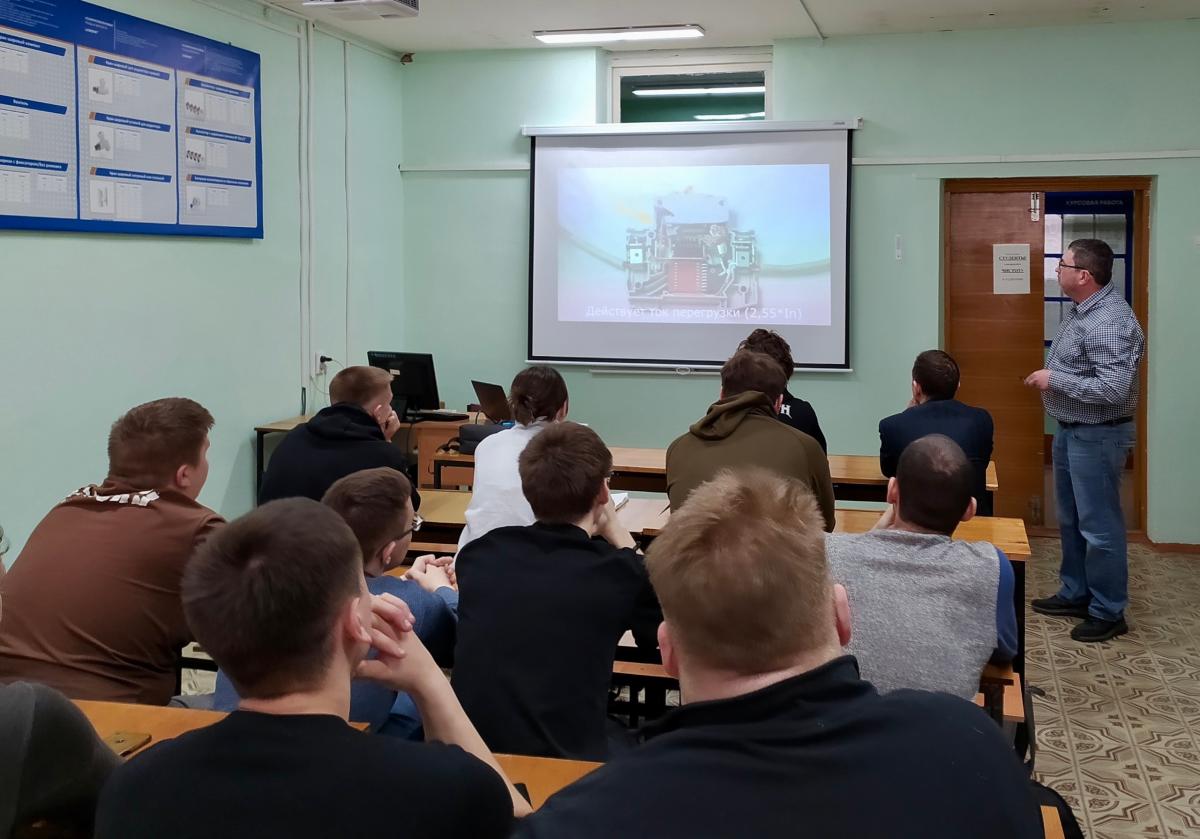 Гость рассказал о решениях в области электроснабжения и электробезопасности, особенностях компоновки электрощитов и подбора автоматов защиты. Большой интерес вызвала новейшая разработка — устройство защиты от дугового пробоя (УЗДП). Для будущих строителей и специалистов по техносферной безопасности это не просто новинка рынка, а реальный инструмент, с которым они столкнутся в профессиональной деятельности.