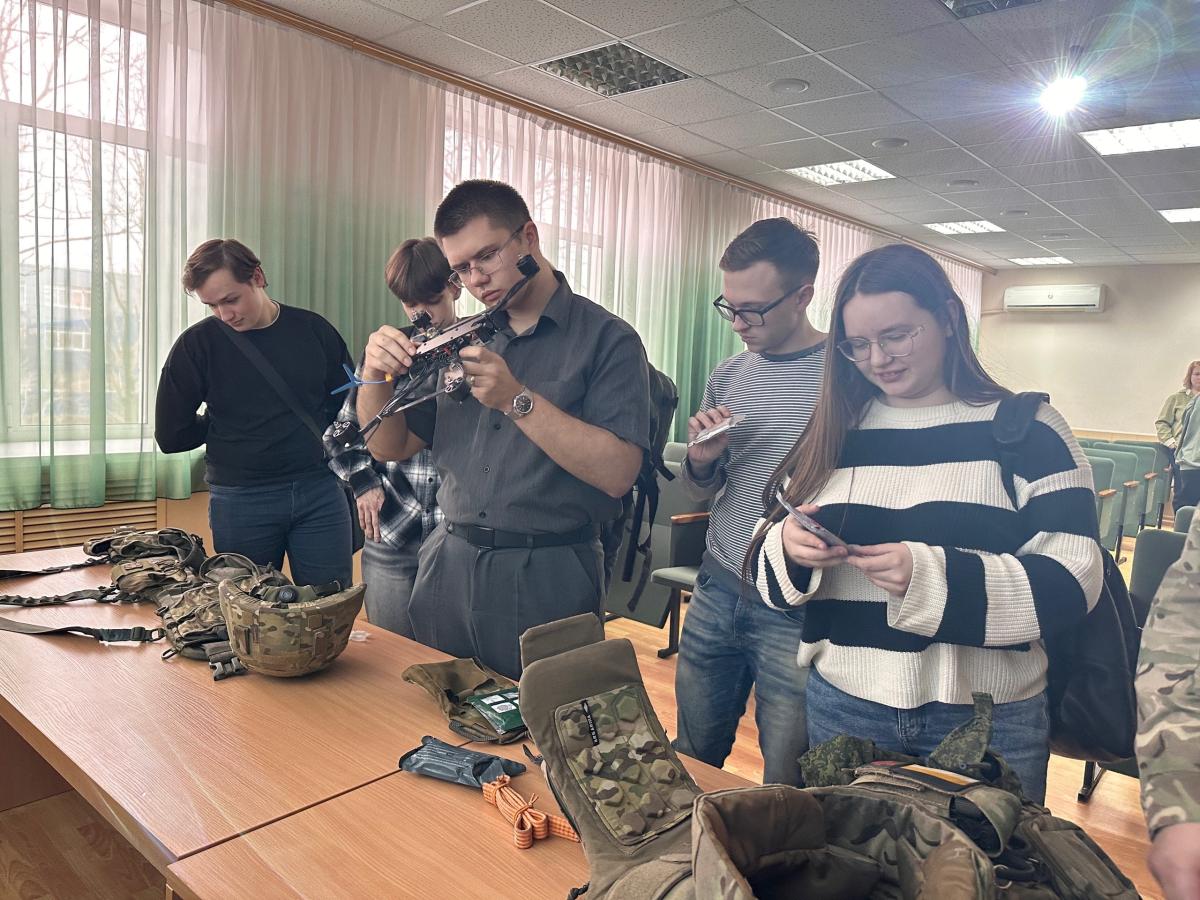 Особый интерес вызвал обзор армейских аптечек и средств оказания помощи, которые есть у каждого бойца. Виталий на конкретных примерах показал, как оказывать первую помощь — не только при ранениях, но и в других критических ситуациях. Поскольку его служба была связана с БПЛА, студенты задавали много вопросов об управлении и технических характеристиках разных типов дронов. Гостя долго не отпускали, расспрашивали о командирах, однополчанах, ранениях, тревогах и даже о радостях, которым, как оказалось, есть место и на фронте.